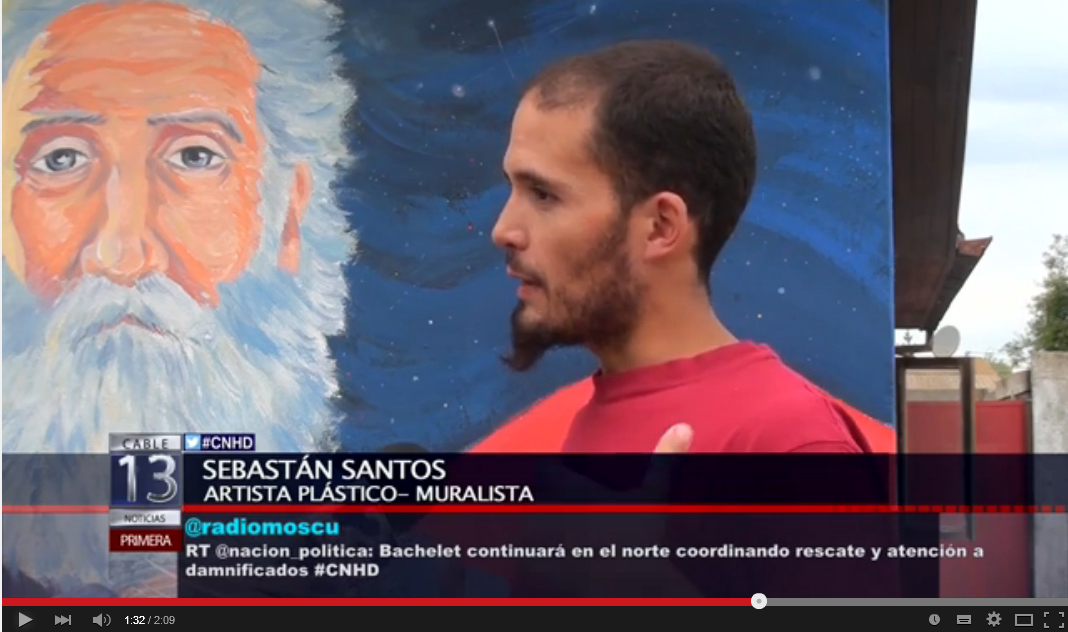 Os compartimos un video emitido por el Canal 2 sobre el mural realizado por el artista uruguayo Sebastián Santos en el Sindicato Obrero de la Cosntrucción de San Antonio (Valparaiso; Chile)